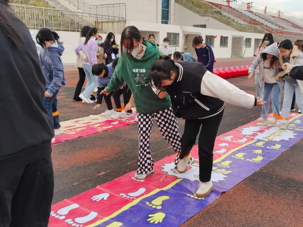 比赛项目以趣味团体项目为主,有两人三足、跳绳、毛毛虫竞速等。项目不仅是智慧和体力的较量,更是团结和协作的比拼。“友谊第一,比赛第二”,赛场上同学们奋力拼搏,掌声喝彩声此起彼伏。