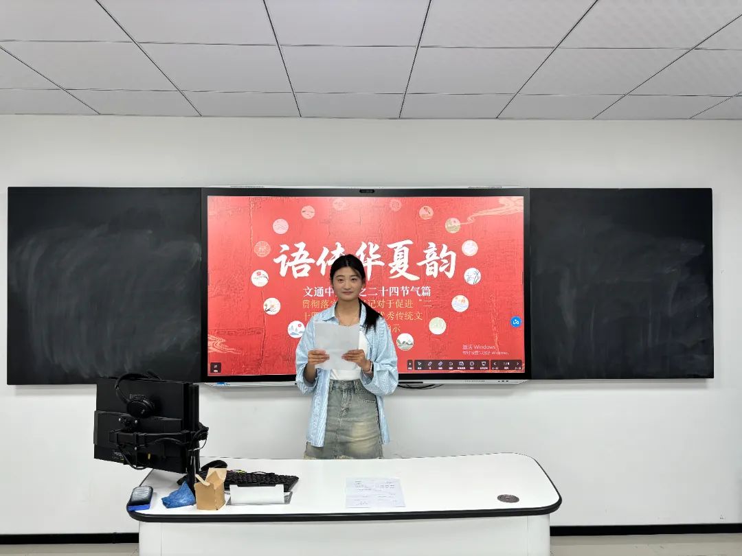 多语诵读活动中,参赛者围绕二十四节气主题展开多元创新。英语组以《节气之美》经典文本为载体,通过精准的语音把控展现时序流转之美;日语组则演绎小林一茶等诗人的节气俳句,以细腻的声线传递东方物候意境。创新环节中,选手通过多媒体手段配合播放节气主题纪录片及习近平总书记关于传统文化论述影像,实现语言表达与文化内涵的有机融合,多维度呈现节气文化的科学体系与人文价值。