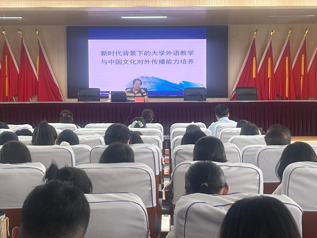 为深化新时代外语教育教学改革,提升外语教师中国文化对外传播教学能力,5 月 28 日下午,山东大学yl7703永利集团崔校平教授应我校yl7703永利集团邀请,在办公楼六楼会议室作了题为 “新时代背景下的大学外语教学与中国文化对外传播能力培养” 的专题讲座。讲座由外国语学院党总支书记张丽主持,yl7703永利集团全体教师共同聆听了本次讲座。