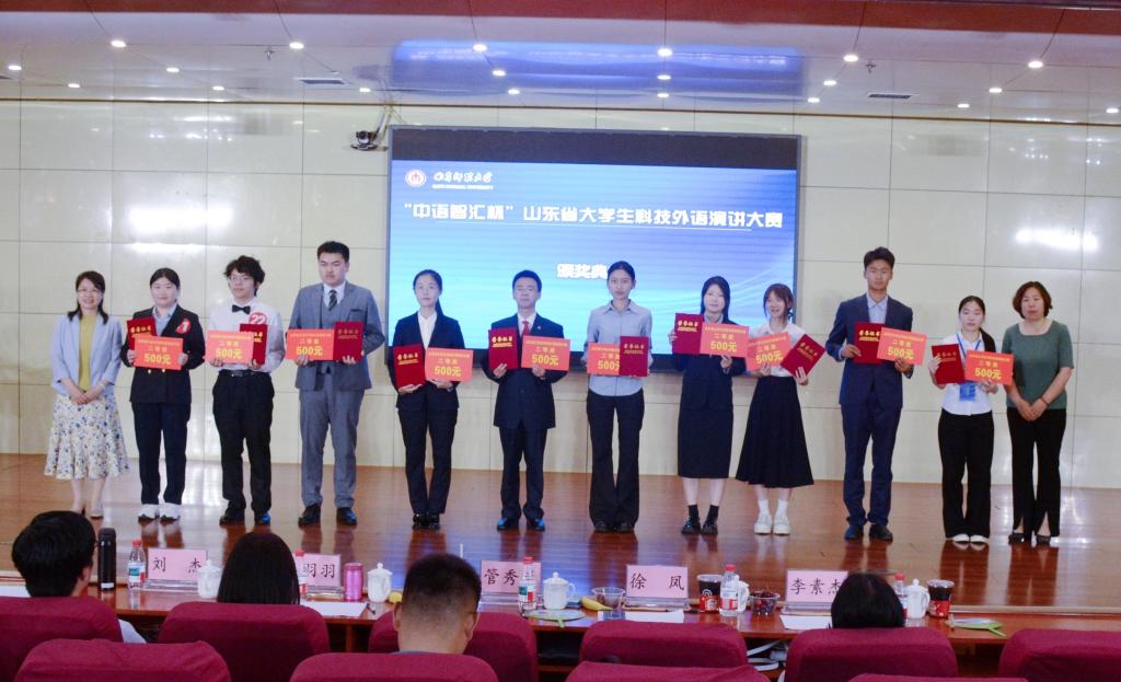 山东省大学生科技外语大赛由山东省科学技术协会、山东省教育厅、共青团山东省委、山东省发展和改革委员会、山东省工业和信息化厅、山东省人力资源和社会保障厅等单位联合主办,来自山东大学、上海理工大学等全国高校的千余名选手参加,旨在进一步推动科技外语人才培养和成果转化,促进科技外语健康发展,提升大学生科技外语水平。演讲大赛采取命题演讲加即兴演讲的形式,考察了选手的语言功底、科技知识素养、较高的表达技巧和较强的应变能力。