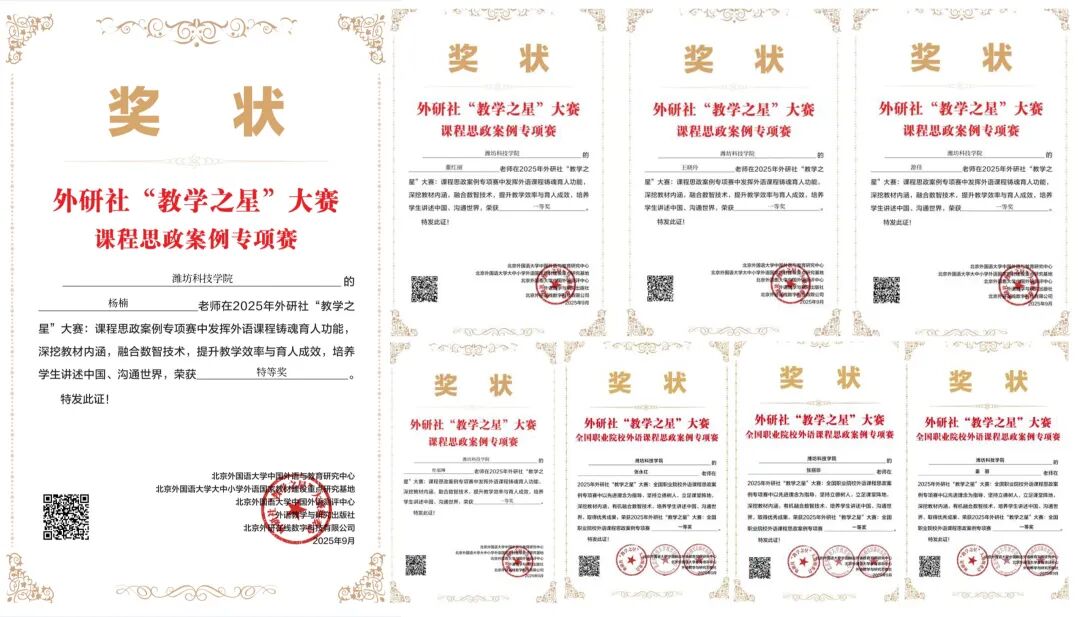 深耕“三进”结硕果,赛场闪耀思政辉。在2025年外研社“教学之星”大赛课程思政案例专项赛中,全国2200多份高校参赛作品同台竞技,yl7703永利集团教师凭借扎实的教学功底与创新的思政设计脱颖而出,斩获佳绩:杨楠老师荣获特等奖,董红丽等七位老师荣获一等奖,另有多名教师分获二、三等奖。这份亮眼成绩的背后,是学院党总支高度重视思政教育“三进”工作的生动实践。