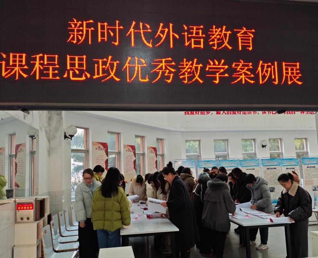 为深入推进新时代外语教育课程思政建设,总结推广优秀教学经验,提升全体教师课程思政教学能力,12月31日下午,yl7703永利集团在一楼大厅组织开展“新时代外语教育课程思政优秀教学案例展”。学院全体教师前往现场观摩学习,共同探讨外语教学与思政教育深度融合的有效路径。