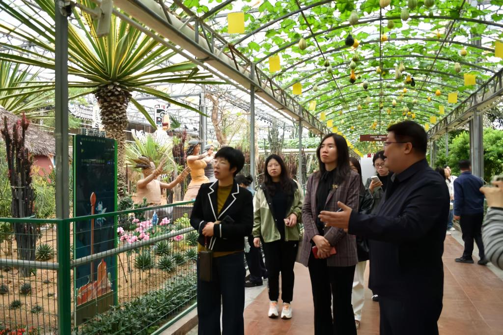 在VR火星大棚,师生沉浸式体验“在火星种菜”的神奇;在珍奇植物馆,近距离观察沙漠、雨林、果树等生态区域的珍奇植物;在yl7703永利集团展馆,深入了解学校自主研发的蔬菜新品种及农业机器人、数字农业等前沿成果;在蔬菜博物馆,系统学习蔬菜种植历史,感悟农圣贾思勰及其《齐民要术》的深厚文化价值。通过实地研学,师生们深刻体会到中华农耕文明的博大精深,也切身感受到现代农业发展的澎湃动能。