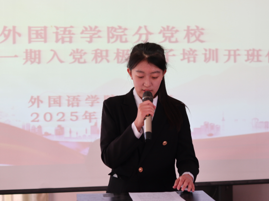 入党积极分子代表窦梓菡同学发言,她表示:此次培训是一次难得的精神洗礼,作为一名入党积极分子,我将以严肃认真的态度对待培训,遵守纪律;认真学习党的理论知识,提高思想觉悟;积极参与志愿服务和社会实践活动,发挥模范带头作用。她坚信,在党组织的关怀和老师们的指导下,入党积极分子们将更加系统地认识党,提升自我,争取早日成为一名合格的共产党员。