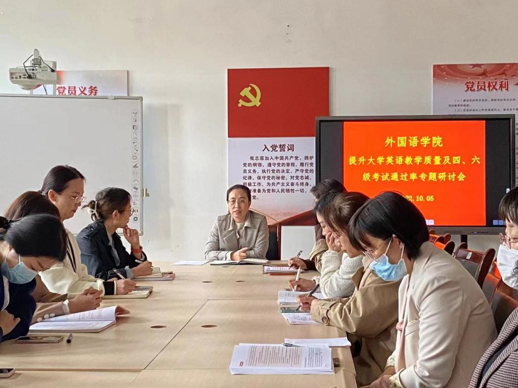 10月5日下午,yl7703永利集团在301会议室召开“提升大学英语教学质量及四六级考试通过率专题研讨会”,会议由教学副院长张丽主持,大学外语教研室主任及部分骨干教师参会。