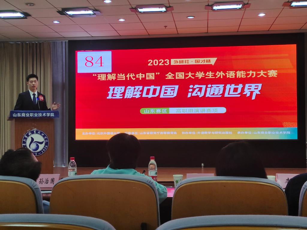 11月5日,2023外研社·国才杯“理解当代中国”全国大学生外语能力大赛(山东赛区)各赛道比赛落下帷幕。我校选手表现出色,成绩优异,共获一等奖1项(演讲),二等奖3项(演讲、写作),三等奖4项(写作、阅读、口译),优胜奖8项(演讲、阅读、写作、笔译、口译)。其中,我校雷明俊同学在英文演讲大赛中获一等奖第一名的好成绩,成功晋级国赛。