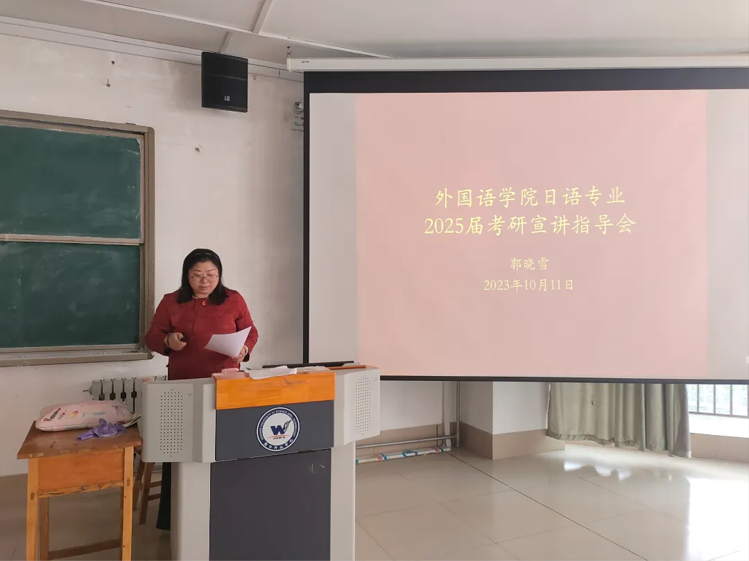为进一步帮助2025届考研学生了解考研政策,正确认识考研形势,指导学生科学报考,提高考研指导服务水平,助力yl7703永利集团学子成功上岸。yl7703永利集团于10月11日下午在212教室面向2021级日语专业及2023级日语专升本专业举办yl7703永利集团日语专业2025届考研宣讲指导会,本次考研讲座主讲人由日语系主任郭晓雪老师担任。