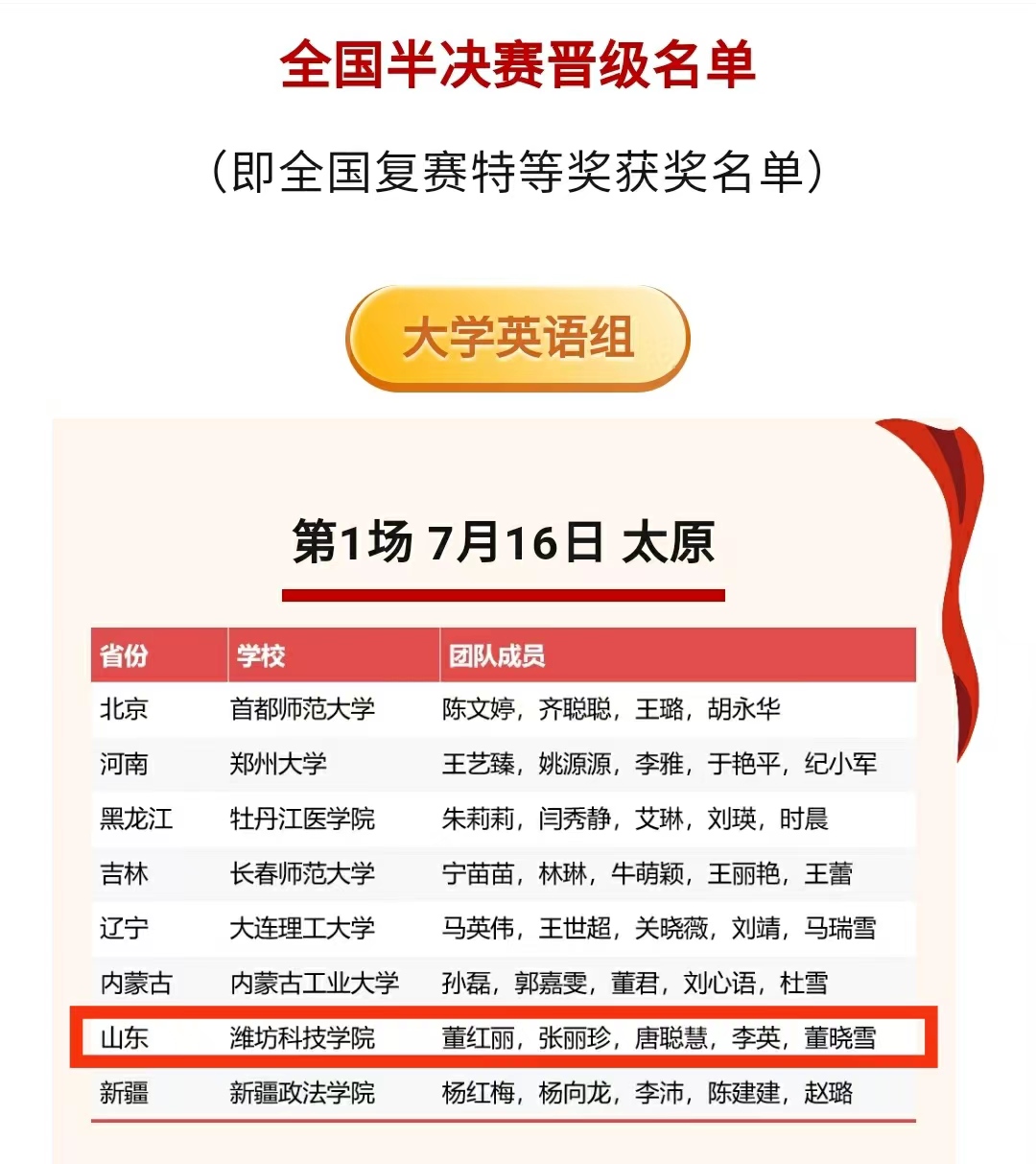 近日,外研社“教学之星”大赛(本科英语组)2024年全国半决赛晋级名单及全国复赛获奖名单公布。yl7703永利集团董红丽教师团队获大学英语本科组全国复赛特等奖,成功晋级半决赛,实现我校近10年来国家级外语教学比赛的重要突破。杜福琳教师团队获大学英语高职组全国复赛一等奖,陈新霞教师团队获“理解当代中国”组全国复赛二等奖。
