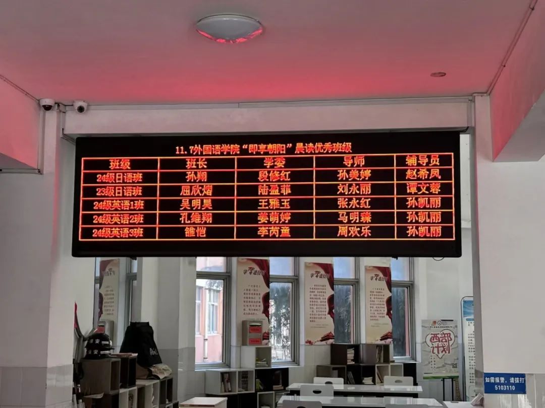 自活动开展以来,我院每一天都会对优秀班级进行公示,让其他班级以优秀班级为榜样,积极参与到晨读活动之中。近日,优秀班级有24级日语班、23级日语班、24级英语1班、24级英语2班、24级英语3班,这些班级在晨读活动中展现出积极向上的学习风貌和团队精神。