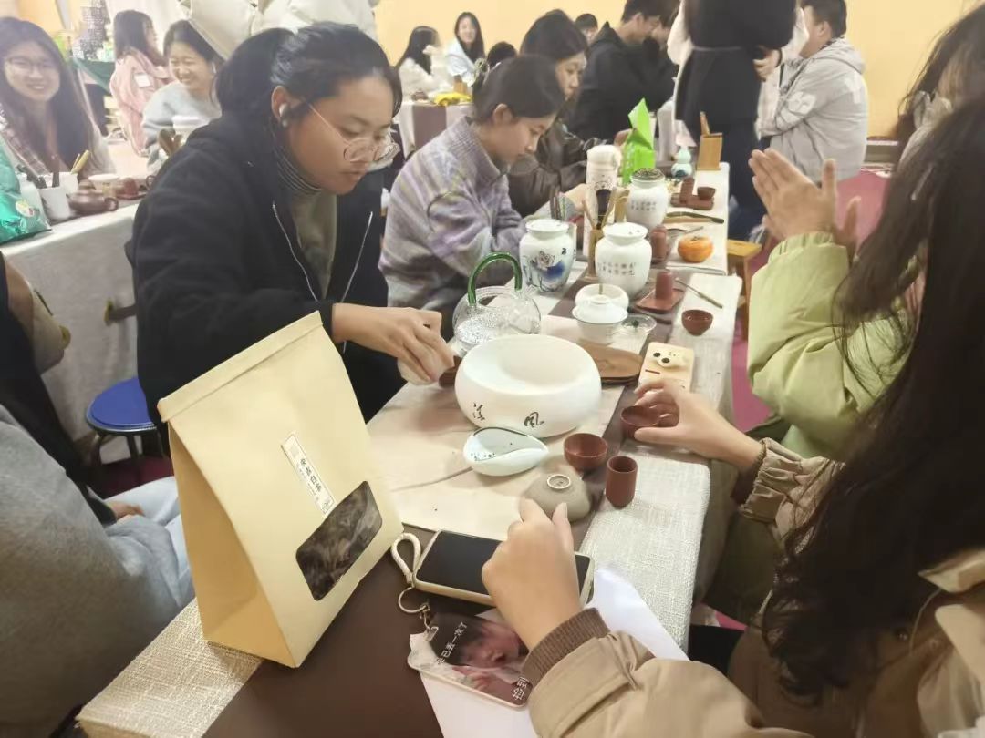 品茶交流会活动开始前,指导老师会向学员们展示泡茶技巧和流程,学员们遵循步骤,展示着泡茶的全过程,从温杯、醒茶、冲泡到奉茶。在专业指导老师指导下,学生能够体验和感受茶文化的独特魅力。