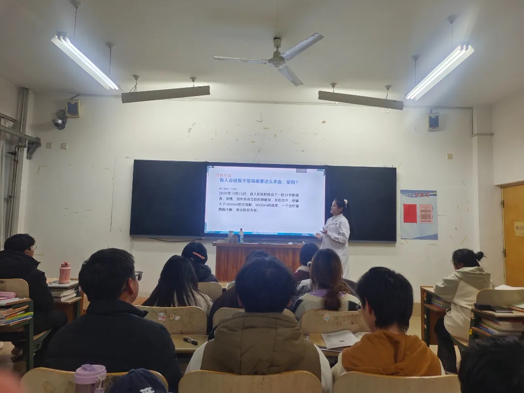 活动现场,医学院志愿者们以生动的语言和丰富的实例,详细讲解了血液的生理知识及无偿献血的流程和注意事项。在互动问答环节,志愿者们解释了无偿献血对医疗救助的重要性,并就同学们关心的献血是否影响健康、不同血型的特点和用途等问题进行了详细解答。
