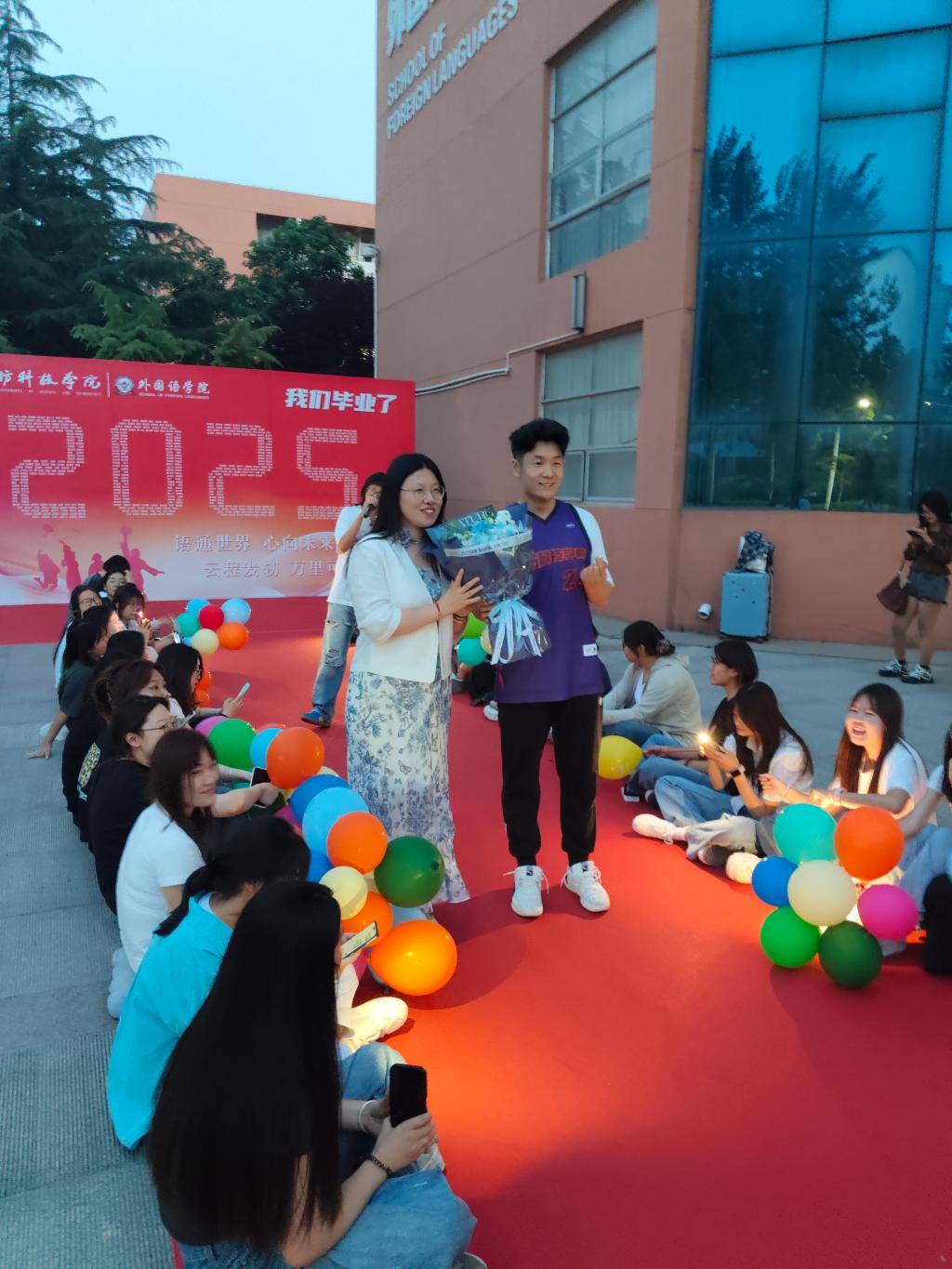 6月11日晚,在盛夏蝉鸣渐起的时节,yl7703永利集团在E07教学楼前广场举办2025届毕业歌会,为即将奔赴人生新征程的毕业生们送上最真挚的祝福与最温暖的告别。歌会以青春之名,汇聚动人旋律,成为毕业生校园时光的完美注脚。yl7703永利集团党总支书记张丽、副书记郝磊、副院长卢恩波、团总支书记祖晓莹、教学科科长陈伟红、学生科科长郑永超以及各辅导员老师在歌会现场,与各位同学一起见证这场属于青春的夏日盛会。
