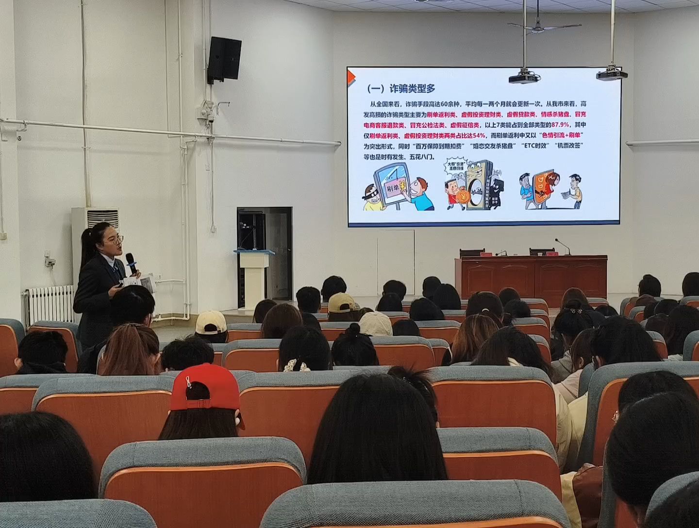 党建护航反诈普及,织密防护网络。深化“党建+校地合作”,与寿光农村商业银行党支部共建,邀请反诈专员解析“校园贷”“刷单返利”等骗局,党总支副书记郝磊强调党员要带头筑牢防线。创新开设反诈“微课堂”,深度剖析“冒充领导”“情感诈骗”等案例,融入法规解读,提升师生识骗防骗能力,构建“党组织牵头、专业支撑、全员参与”反诈格局。