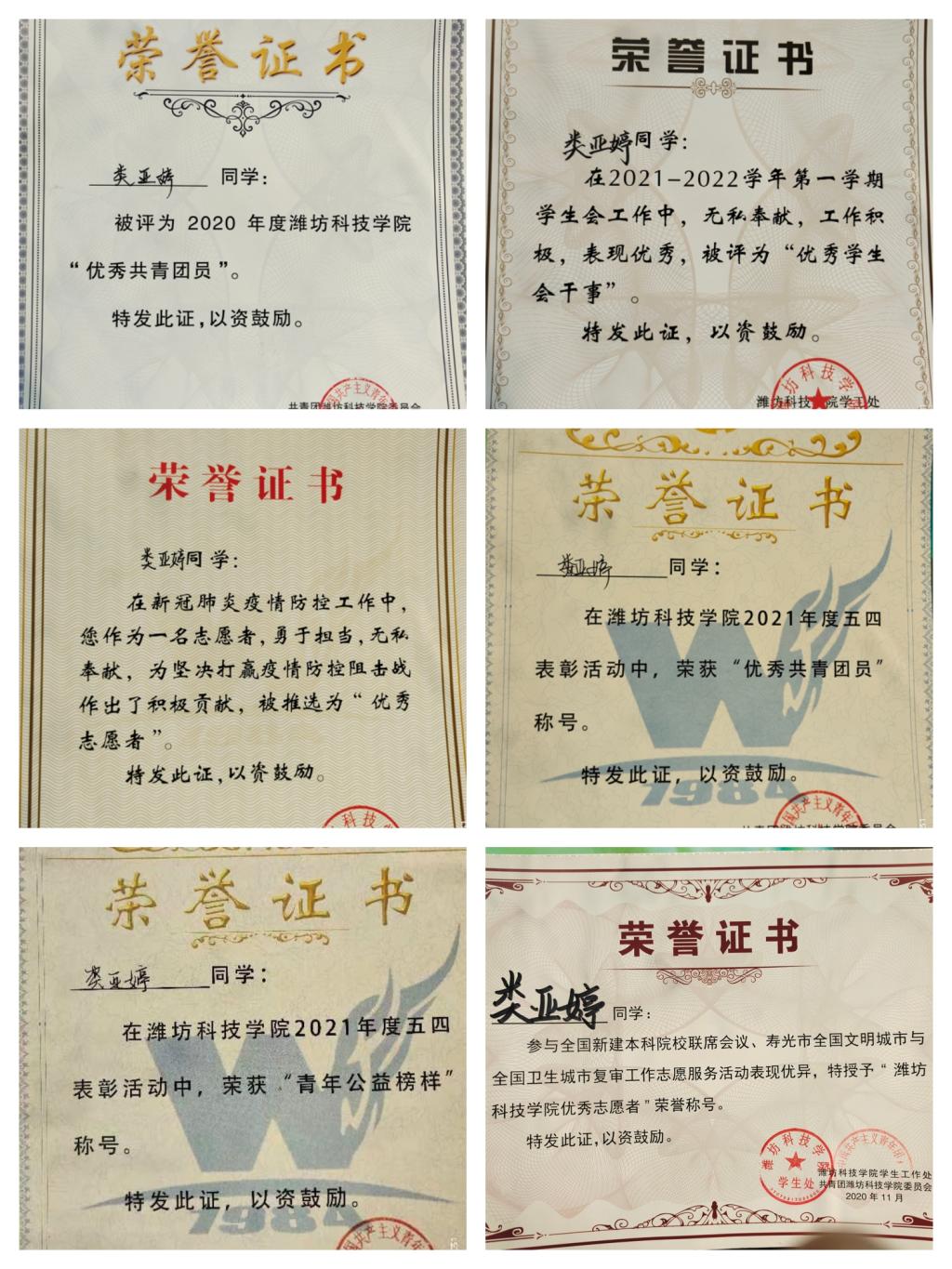 类亚婷还积极投身志愿服务工作,将小我融入时代,贡献自己的一份青年力量,多次获得“优秀志愿者”称号。