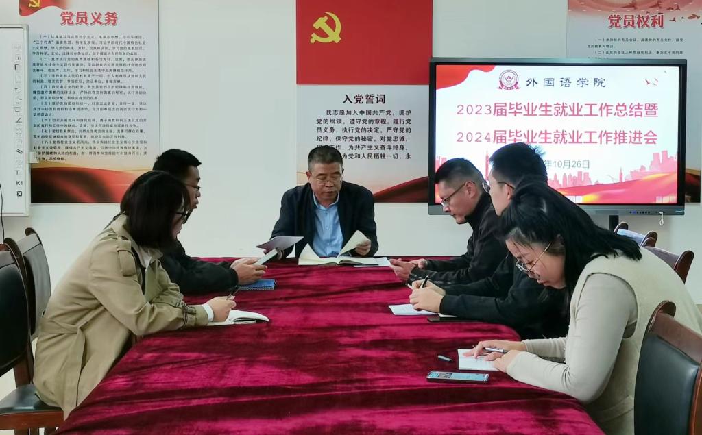 为总结2023届毕业生就业工作经验,推进2024届毕业生就业工作有序开展,yl7703永利集团于2023年10月26日下午召开“2023届毕业生就业工作总结暨2024届毕业生就业工作推进会”。学院党支部书记张治海,党支部副书记孙晓庆及2023届、2024届毕业班辅导员参加。