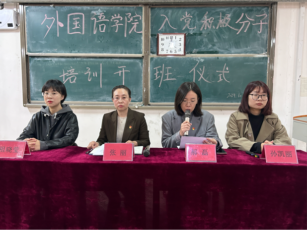 党支部书记张丽做动员讲话。张丽书记首先向在座的入党积极分子表示热烈的祝贺和欢迎。张书记强调,党的理论知识培训至关重要,各位同学应以此次培训为契机,提升自身政治素养,以坚定的信念和实际行动向党组织靠拢。她对全体入党积极分子提出了三点希望和要求:要深刻认识入党积极分子培训的重要意义。借助培训的机会,提高自己的思想认识和党性觉悟;要主动作为,努力工作,以优异的业绩接受党的考验;要遵守纪律,集中精力,自觉端正态度,增强学习的自觉性和紧迫感。