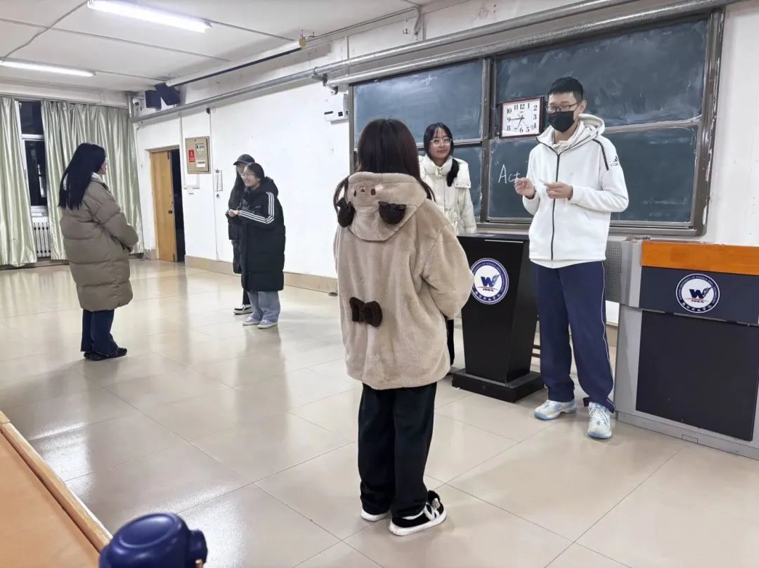 参赛者们需要在限定的时间内,通过动作、表情、简短的言语来描绘出所给的单词。其他参赛者则需根据表演者的表演,猜测出相应的单词。参赛者们一个个精神抖擞,全情投入到这场充满趣味的英语猜词游戏中。有的参赛者手脚并用,夸张的动作引得观众阵阵笑声;有的则凭借丰富的表情,将单词的含义展现得淋漓尽致。简短的言语中,他们尽力用最准确的词汇描述,让队友能够迅速抓住关键信息。场上的气氛越来越热烈,参赛者们你争我抢,竞相展现自己的表演天赋。每当一个单词被正确猜出,现场便爆发出热烈的掌声和欢呼声,志愿者们则一丝不苟地记录下每一次精彩的瞬间,确保比赛的公正与秩序。经过一番紧张而有趣的角逐,“Act&Guess”单词大作战活动在欢声笑语中圆满落幕。