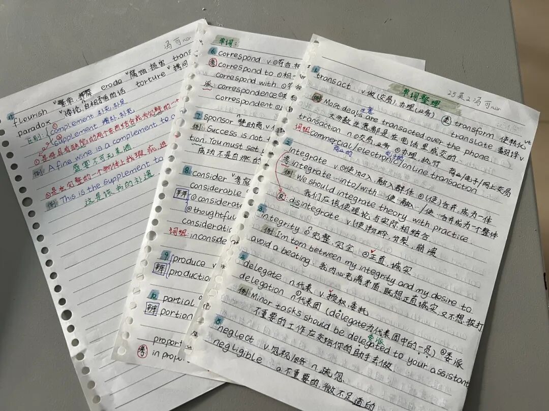 本次活动征集分为课堂笔记与备考计划两大类别。课堂笔记主要是单词整理、语法总结等基础内容;备考计划则围绕四六级考试、新学期课程预习等现阶段学习目标展开。自活动启动以来,各年级同学积极响应,提交的作品真实反映了大家平时的学习状态,也展现了良好的学习习惯。