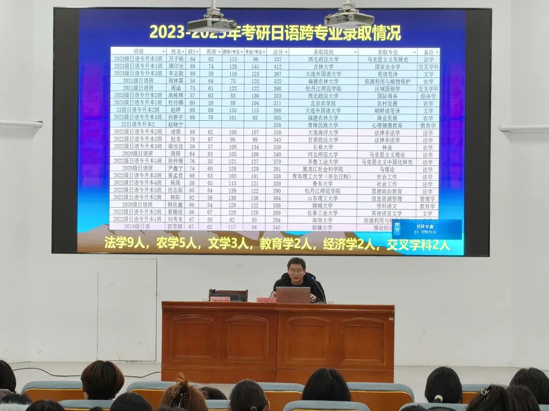 在备考方法层面,李主任分享了日语考研的提分技巧与实用参考书目,强调“勤练真题、查找短板、针对性补漏”是提升应试能力的有效途径。他指出,考研不仅是对专业知识的检验,更是对意志品质的锤炼,唯有持之以恒、全力以赴,方能在挑战中突破自我、实现目标。