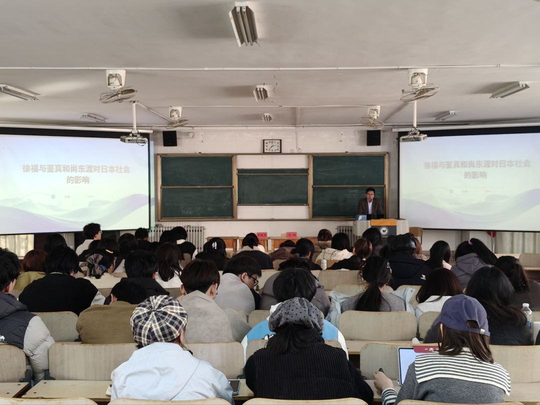 关钢教授从历史文献与考古发现入手,系统梳理了徐福东渡与鉴真东渡这两段重要历史事件,深入剖析了二者在农业技术、医药传播、宗教文化、社会制度等方面对日本社会的深远影响。讲座内容纵横古今、贯通中外,既有严谨的学术考证,又有生动的文化解读,引导学生在历史脉络中理解中日文化交流的渊源,进一步激发了对日语专业的学习兴趣与文化认同。